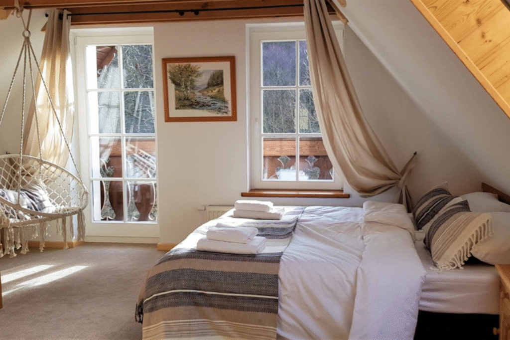 W niewielkim (7-pokojowym) domu gościnnym, pod którego oknami płynie potok, a na łące za mostkiem pasą się rano jelenie. Bez ruszania samochodu możecie się wybrać się na singletracki, górskie wędrówki czy trasy biegowe (znają te najlepsze!).